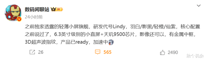 6.3英寸+天玑9500+超声波指纹, 仅6mm薄, 荣耀新机有点颠倒啊